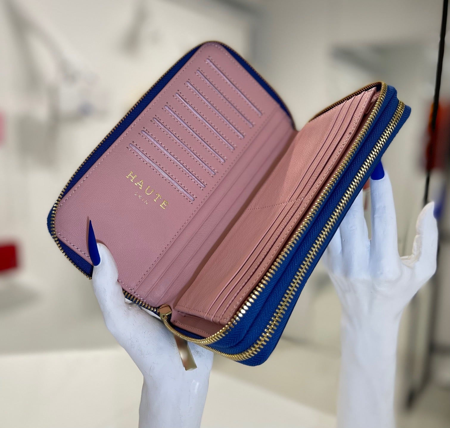 This HAUTE SKIN large feminine wallet is fashioned from genuine highest quality leather, featuring double all-round zip, which opens to reveal multiple cards slots, pockets and compartments. One of our most iconic models, created for multiple businesses owners that love to be organized and always in style!